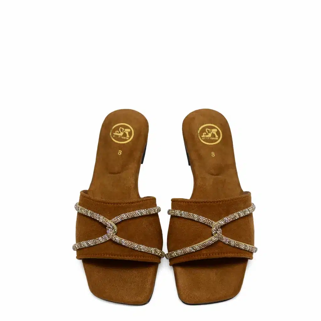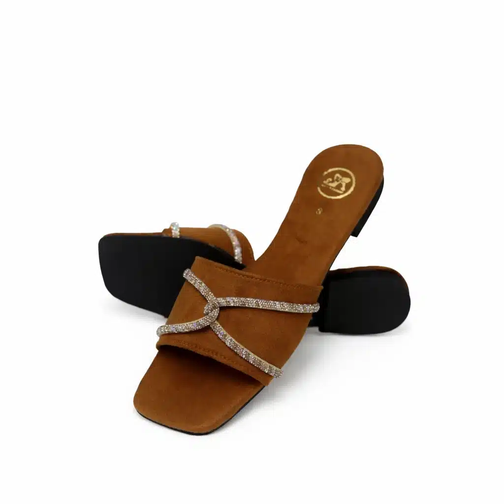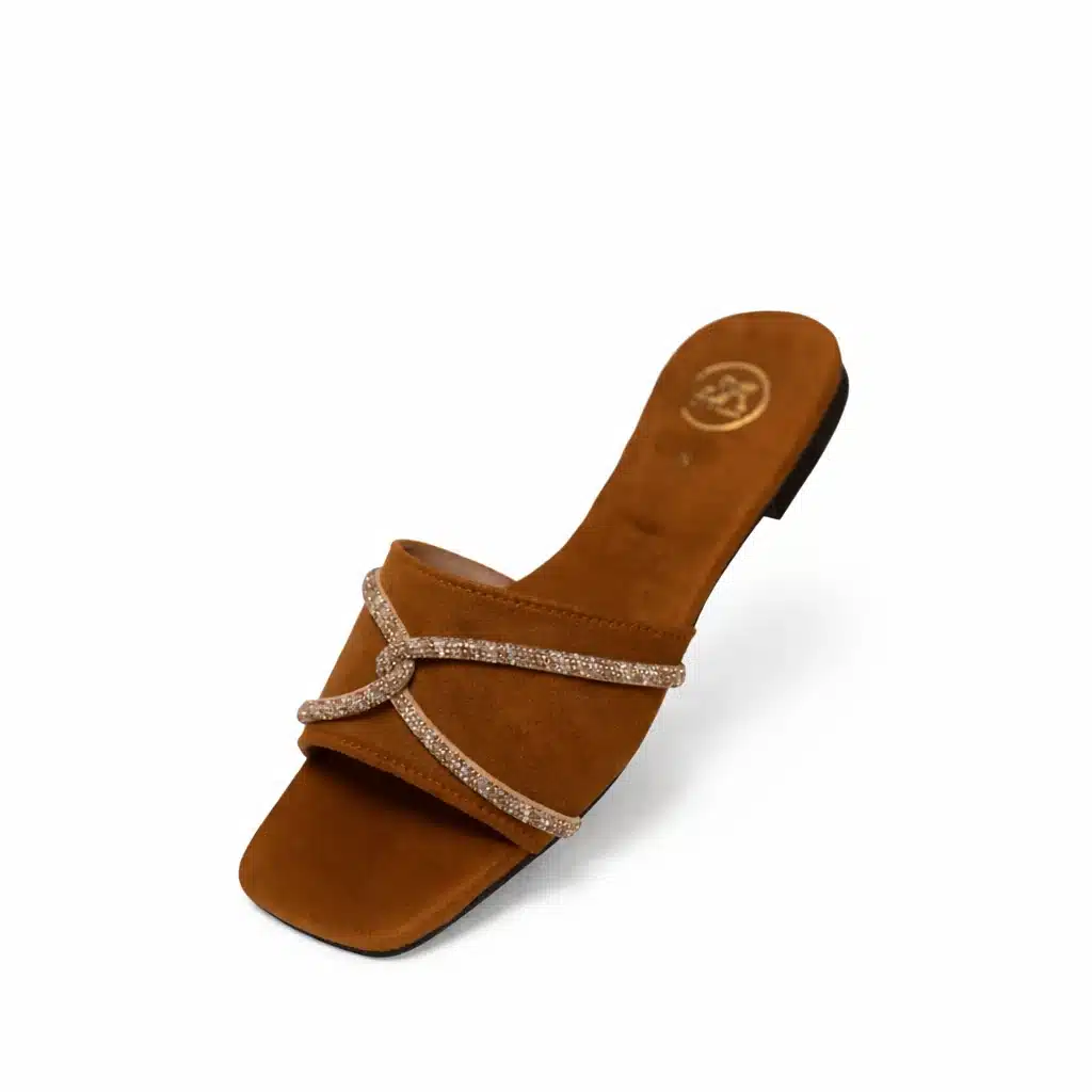 Step into effortless elegance with our Caramel Luxe Knot Flat Slides, designed for women who love comfort with a touch of glamour. Crafted in a rich caramel brown shade, these flat sandals feature delicately embellished crystal knot straps that add a subtle sparkle to your everyday and occasion wear.